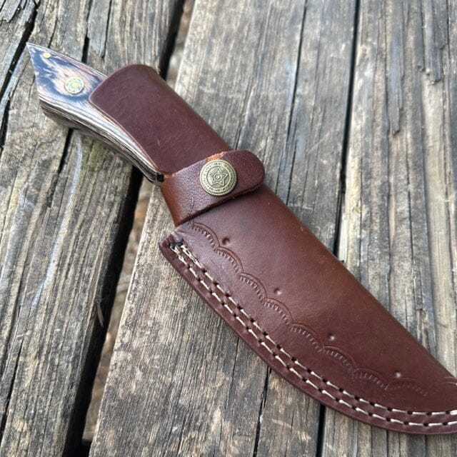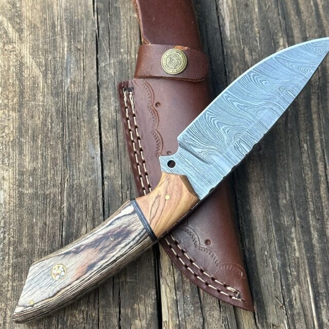 Hunters and knife collectors behold, our gorgeous Olive Rosewood Damascus Hunting Skinner Knife will fulfill your beastly dreams!