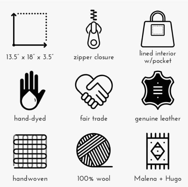 The weaving alone takes about 3 days for each bag.  If sprayed with a waterproofing agent before use, the rich colors will retain their vibrancy, and inhibit dirt and spills from soiling this beautiful bag.