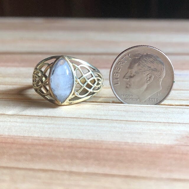 Behold the wondrous woven Celtic braids that meet up with sweet Marquis cut Opal in this Gold Plated Ring ~ One of a kind size 9