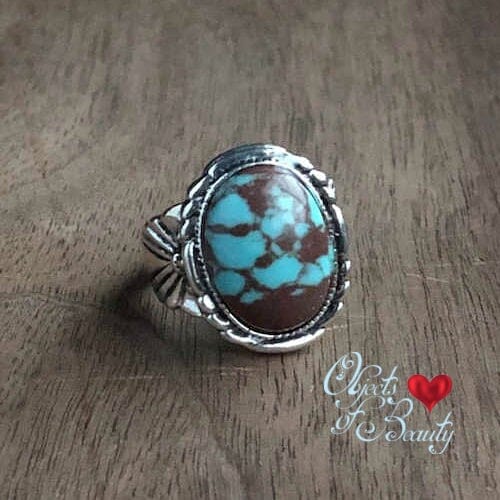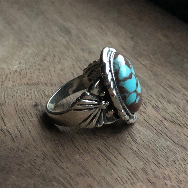 Chunky Turquoise Sterling Silver Ring, with gorgeous brown matrix, and beautiful shank.