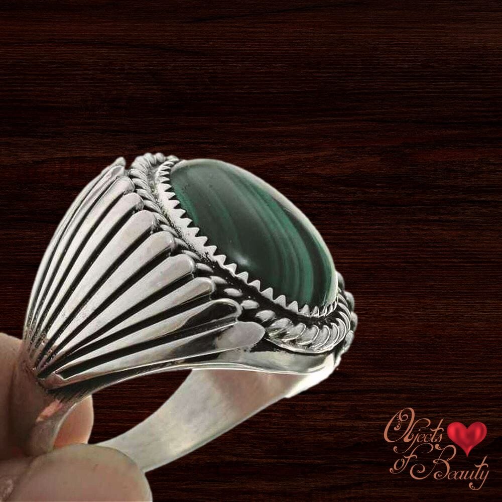An eye-catching statement ring that any confident man would wear, our Malachite Men's ring is Navajo Made in Arizona, USA! Oh...the green!