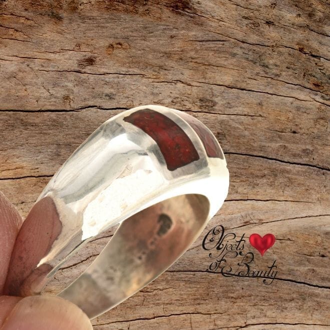 Materials: Solid Sterling Silver, Inlaid Crushed Coral