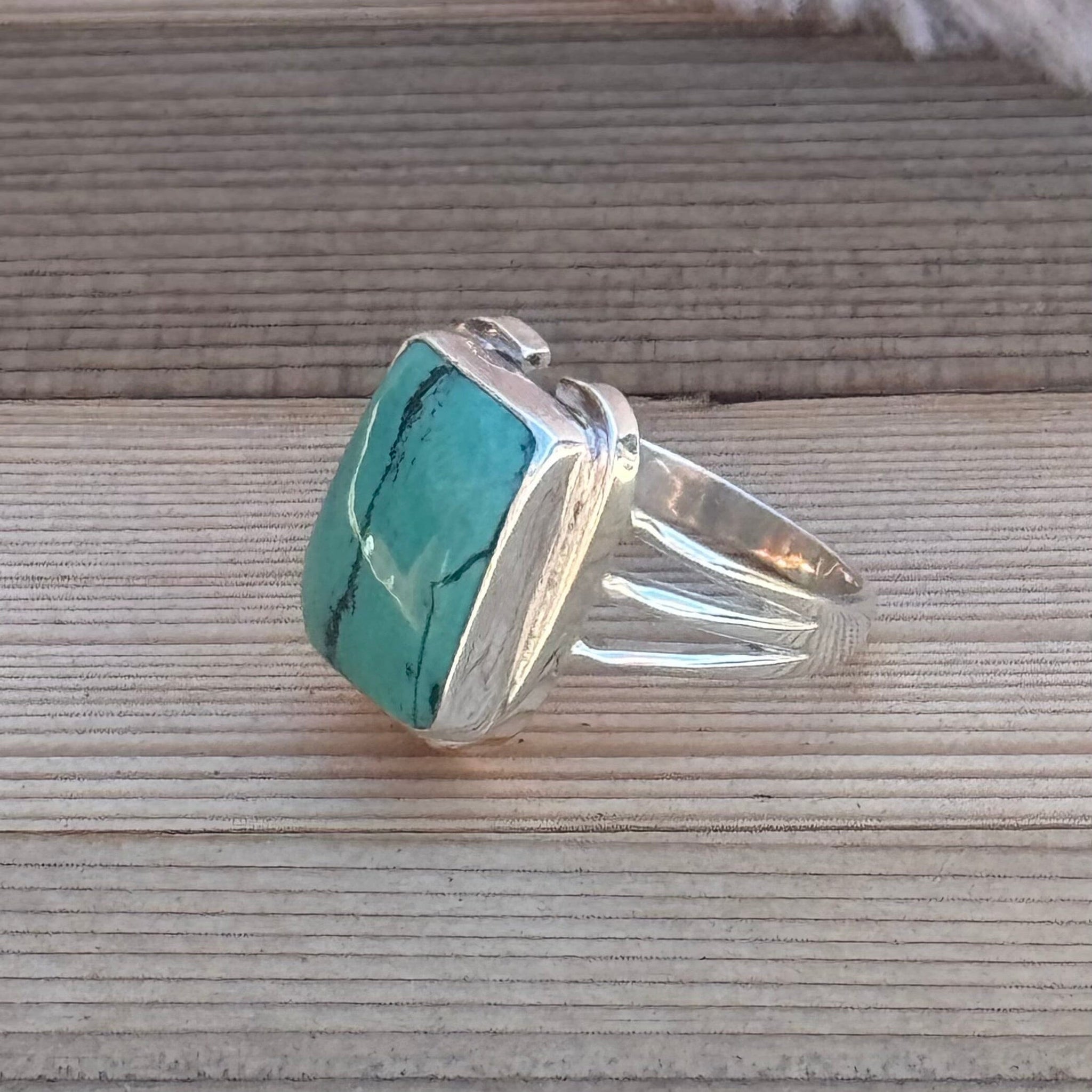 All sizes can be ordered and you may select your stone. We have many to choose from, including Kingman Turquoise ranging in color from soft blue to green, clear, or including matrix and inclusions. See our other Beth Dutton rings for variations, including simple twisted bezels, ornate twisted bezels, and feel free to request customizations, for men and women!